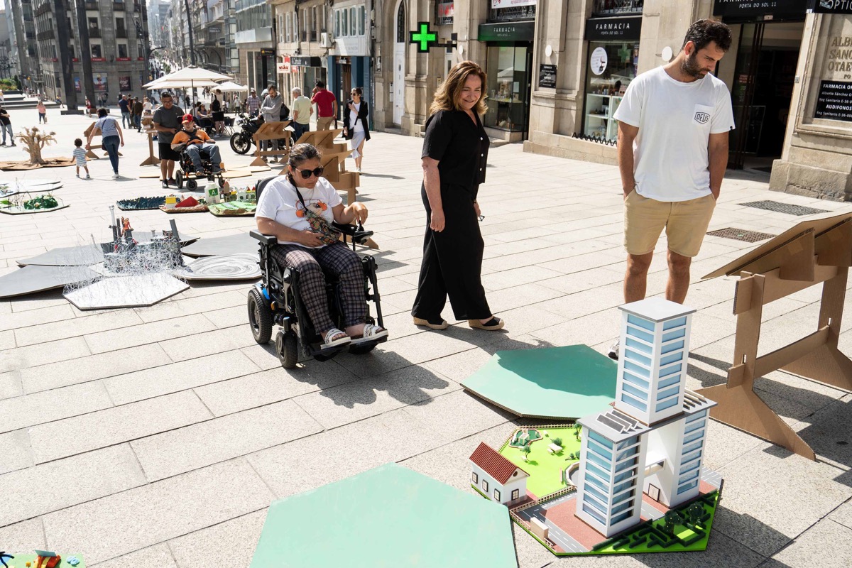 A delegada territorial da Xunta de Galicia en Vigo, Ana Ortiz, participou este venres na VIII intervención artística urbana “Imaxinando a Rúa” que se celebrou na Porta do Sol de Vigo. Organizada pola Asociación de Familiares de Persoas con Parálise Cerebral (Apamp), a iniciativa tivo como obxectivo mentalizar sobre a necesidade de que os espazos sexan accesibles e inclusivos, involucrando ás persoas no deseño dos espazos que habitan, para aumentar a sensación de pertenza e ampliar os usos que toda a poboación fai dos mesmos, a través da adaptación do espazo público.