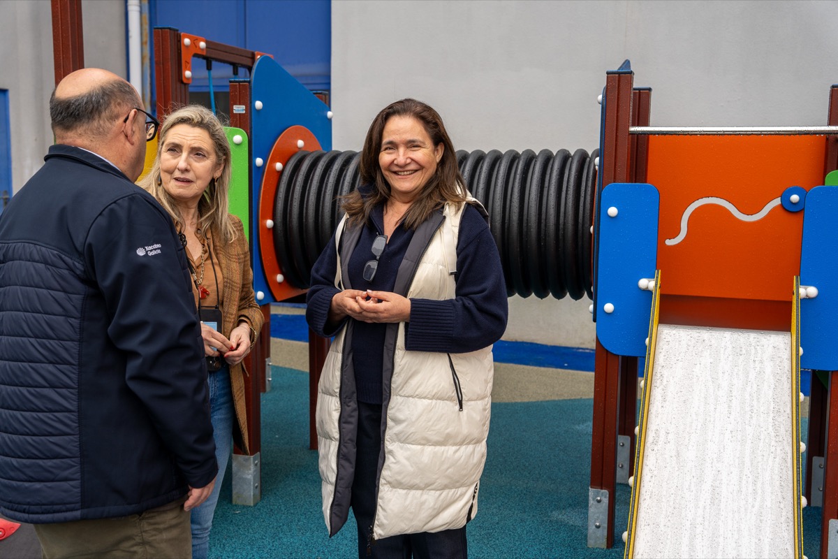 Posteriormente, tanto a delegada como o director territorial visitaron o CEIP Ramón y Cajal de Vigo, situado na rúa Marqués de Valterra, onde levouse a cabo nas últimas semanas a obra para a mellora da pavimentación do patio de xogos de infantil cun investimento de 4.000 euros e a instalación dun novo parque infantil cun importe de 3.000 euros.