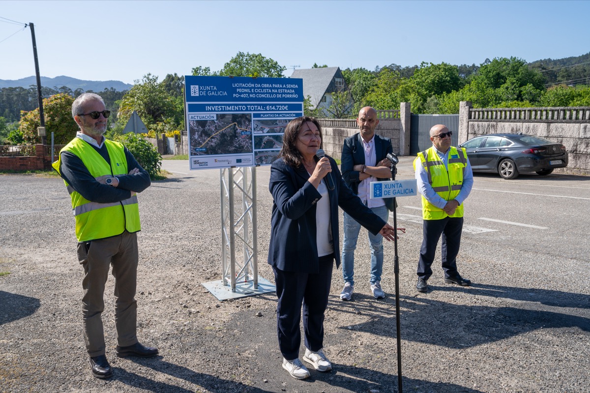 A delegada territorial da Xunta de Galicia en Vigo, Ana Ortiz, e o alcalde de O Porriño, Alejandro Lorenzo, visitaron este venres o tramo da estrada PO-407 onde proximamente darán comezo as obras de construción dunha nova senda peonil. Durante a visita, na que tamén participaron veciños da zona, as autoridades comprobaron sobre o terreo o trazado dunha actuación que busca transformar a seguridade viaria na parroquia de Budiño.