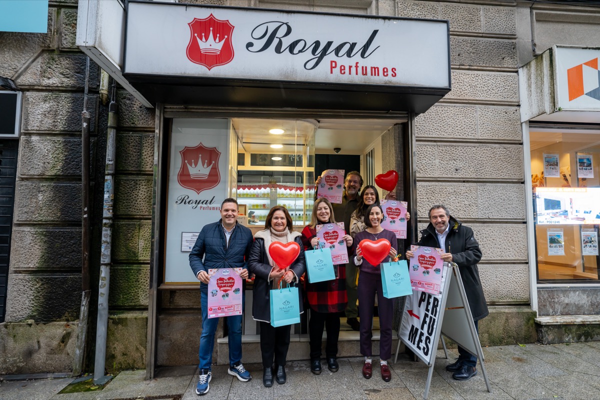 A delegada territorial da Xunta en Vigo, Ana Ortiz, presentou este luns a campaña de “San Valentín” da man do Centro Comercial Aberto Zona Náutico, representado polo seu presidente, César Ballesteros. No acto, celebrado no establecemento Royal Perfumes, na rúa Marqués de Valladares, a representante autonómica destacou o apoio do Goberno galego ao comercio local para fomentar o consumo nos establecementos de proximidade.