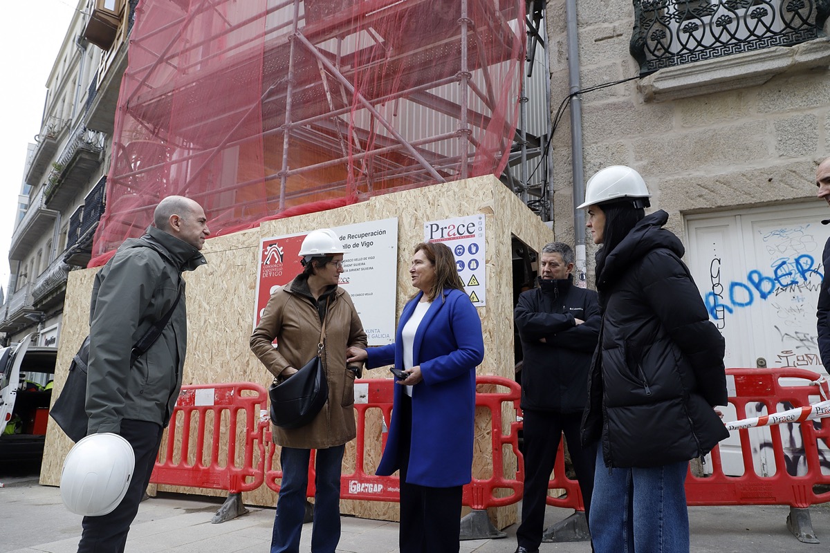 A presidenta do Consorcio Casco Vello (CCVV) visitou este xoves os traballos xa iniciados para rehabilitar o edificio de Elduayen 39/Ferrería 16
