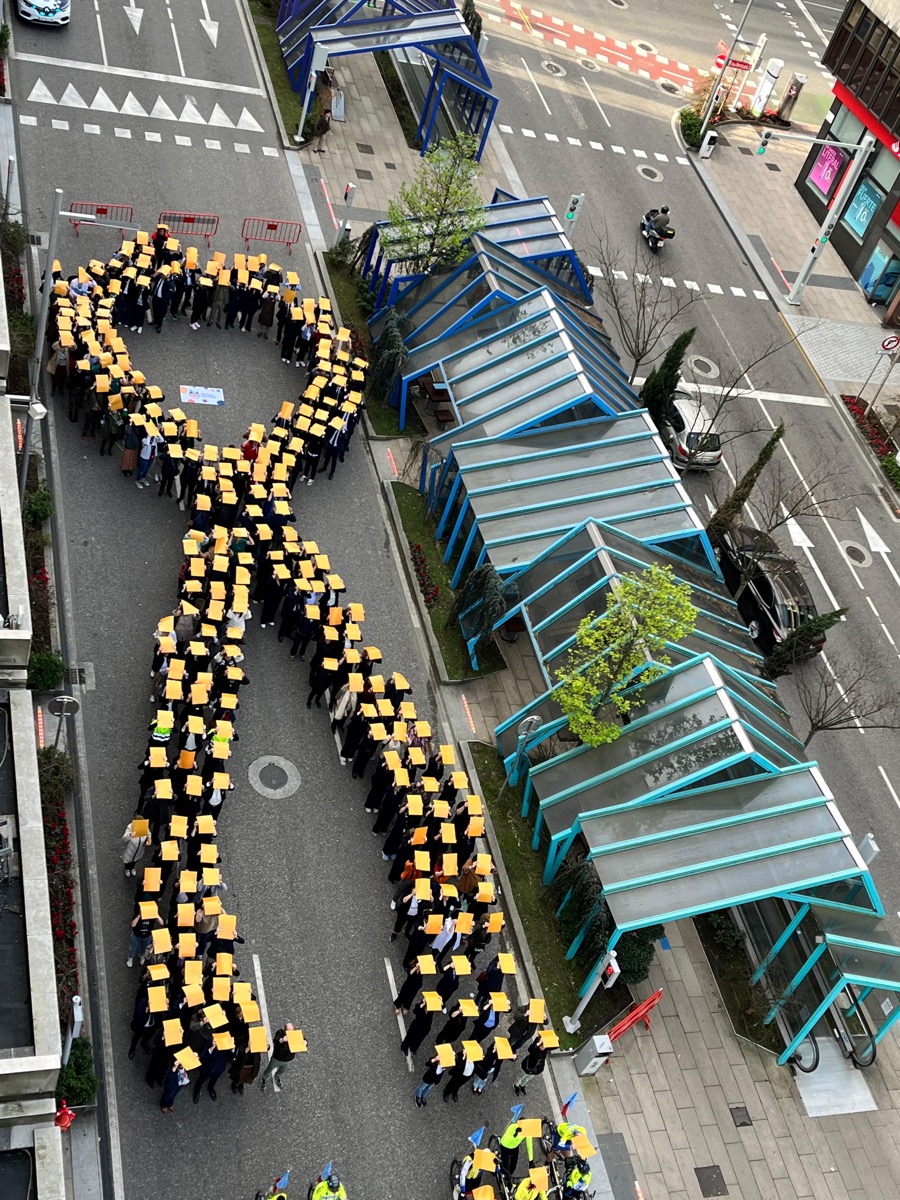No acto, que tivo lugar na Gran Vía de Vigo, participaron empregados dos grandes almacéns e membros de Asanog, así como decenas de cidadáns que quixeron unirse á iniciativa. O lazo dourado simboliza o cancro infantil ao comparar a fortaleza e a resistencia dos nenos.