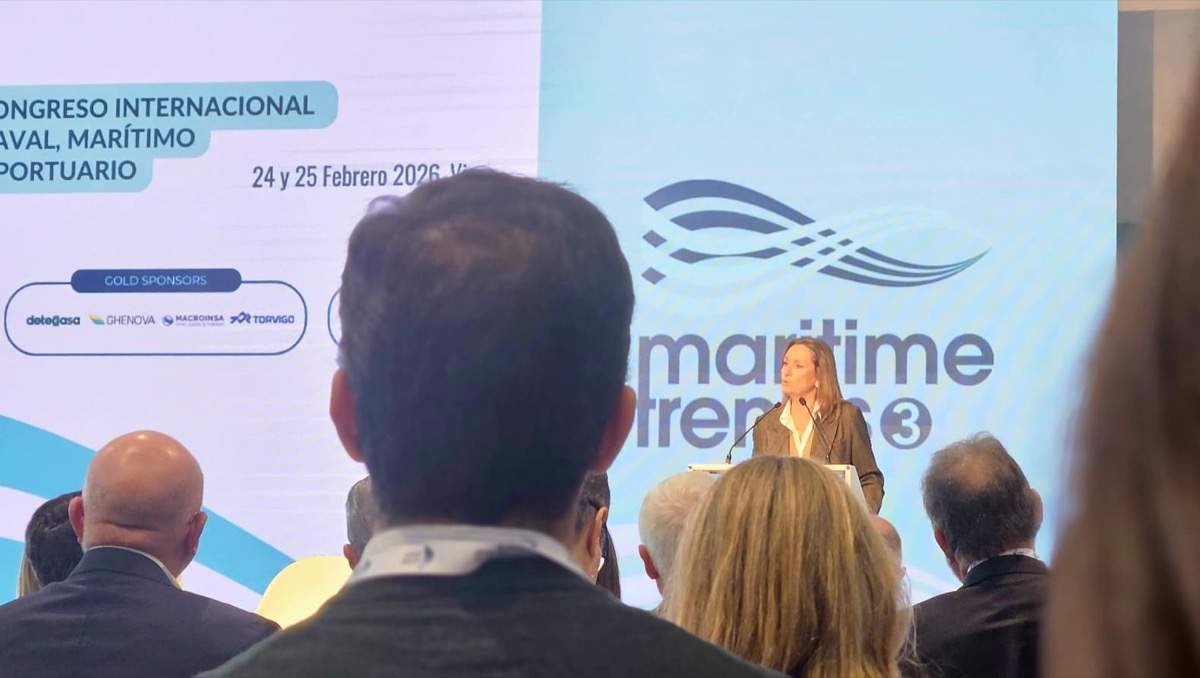 A vicepresidenta da Deputación de Pontevedra, Luisa Sánchez, participou este mércores no congreso internacional naval, marítimo e portuario Maritime Trends, que se celebra en Vigo. Un encontro que reuniu expertos, industria e innovación arredor do ecosistema marítimo global. Durante a súa intervención, Sánchez subliñou que a cidade e a provincia manteñen unha vinculación histórica co mar, configurando un tecido económico no que a construción naval, a actividade portuaria, a pesca, a loxística e a industria auxiliar resultan fundamentais para o desenvolvemento do territorio. Luisa Sánchez destacou tamén que foros internacionais deste nivel contribúen a situar Vigo no mapa, reforzando a súa reputación en ámbitos como a pesca, a construción naval e a exportación de produtos do mar.