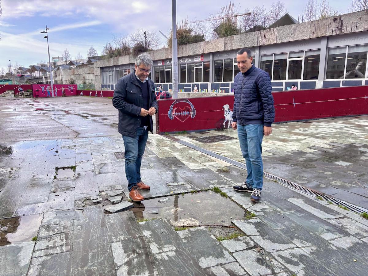 • El PP de Vigo alerta sobre el mal estado de uno de los viales interiores del barrio de Navia, con losetas levantadas, fochancas, basura y escasa iluminación